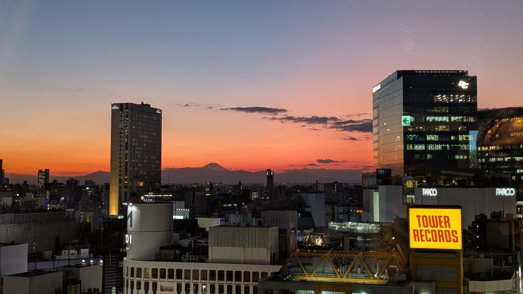 帰社日の後、夕焼けに包まれながら渋谷のレストランに集合します。
